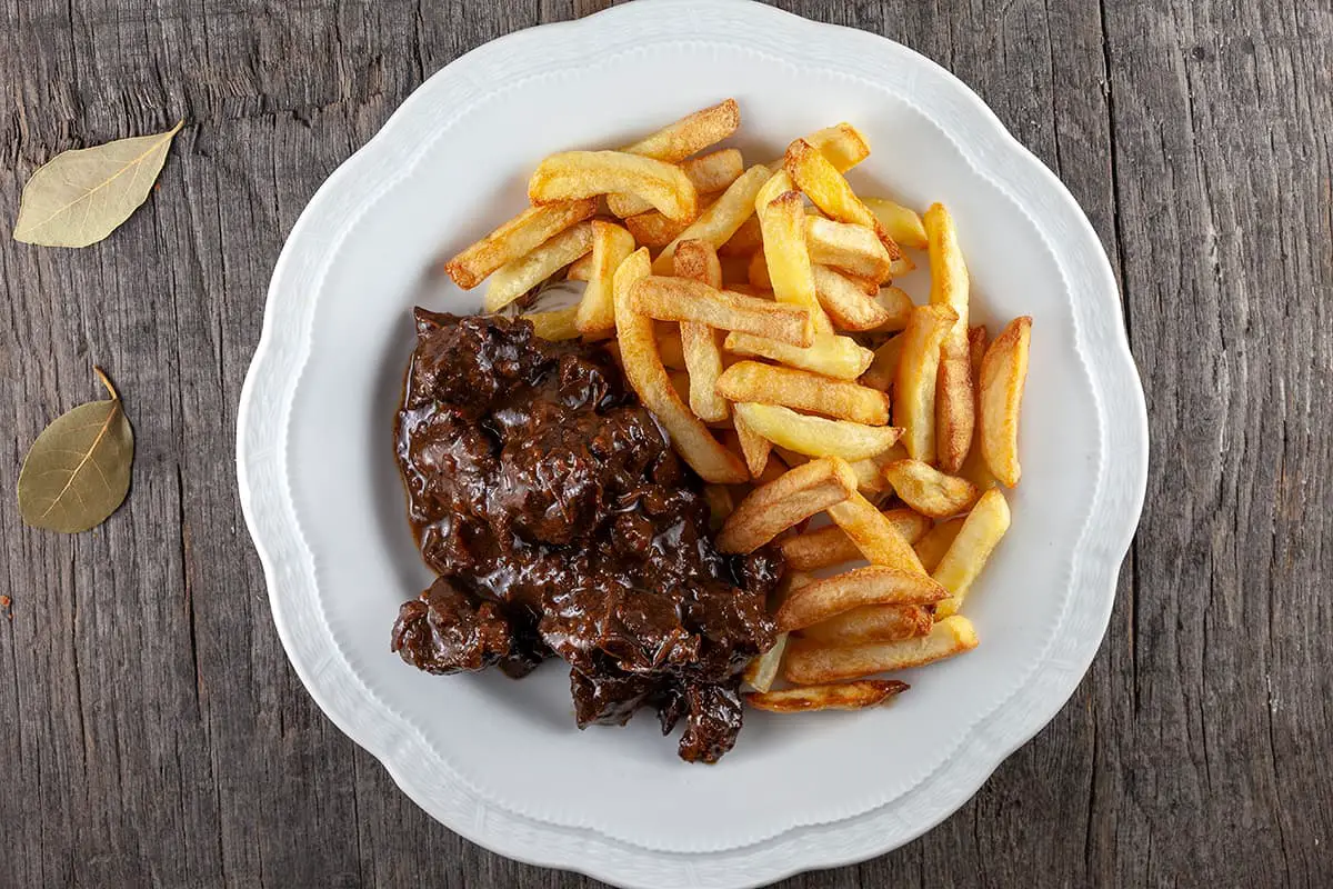 La carbonade doit son nom au charbon de bois sur lequel elle mijotait autrefois pendant de longues heures. Originaire de Belgique et aussi du nord de la France, elle est généralement préparée à base de bœuf, également appelé stoofvlees ou rundstoofvlees en néerlandais.